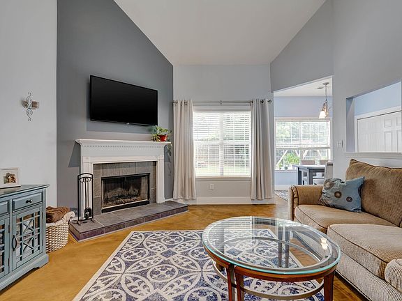 Dont miss this Moody CUTIE PIE in POPULAR Alden Glen! Easy maintenance BRICK AND VINYL exterior with FENCED backyard, in a SWIM community. This OPEN floor plan offers stained concrete floors in living space plus a corner, woodburning FIREPLACE. Eating space in kitchen that opens to SPACIOUS living room. Split bedroom design, all in LIGHT and NEUTRAL colors. Owners suite features a WALK IN closet, double sink vanity, garden tub and separate shower. Open DECKS off the back of home make summer cookouts with friends and family a breeze! Main level GARAGE with pull down attic space for EXTRA storage. Alden Glen offers underground utiities, community pool and clubhouse, sidewalks and is close to interstate and shopping. This home is READY for a new owner to LOVE IT!