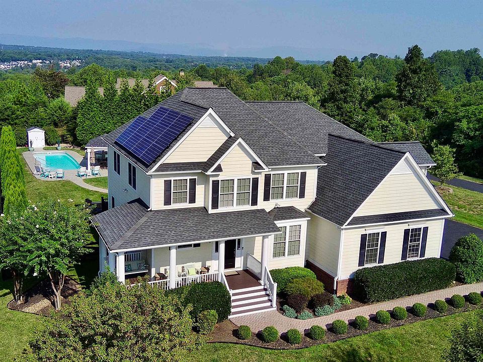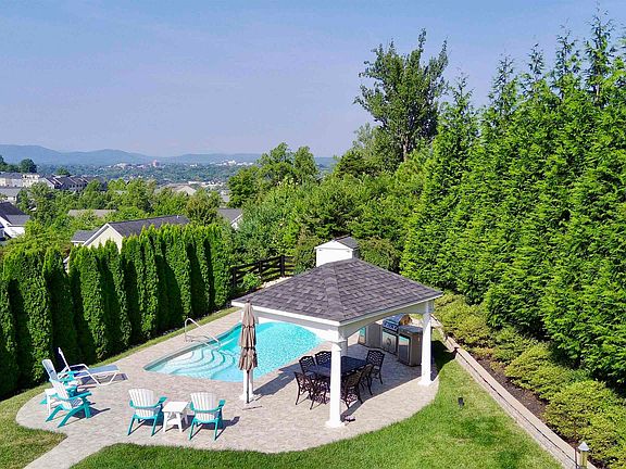 Sweeping mountain views from this desirable Hyland Ridge property. Elevated half acre cul-de-sac homesite, w/resort style setting featuring heated fiberglass saltwater pool with high-end equipment, shaded pavilion w/fan & speakers, outdoor kitchen w/stainless gas grill, and level back yard w/multiple areas for entertaining, relaxing, & watching sunsets over the Blue Ridge Mountains. Extensive landscaping provides a private backyard oasis. Excellent location walking distance to Darden Towe Park, Rivanna River. Well-appointed home w/first floor guest suite. Open floor plan w/views from all windows, cathedral ceilings, abundant windows, large open concept kitchen w/stainless steel appliances & gas cooktop. Large bedrooms w/ mountain views. Spacious finished basement features kitchenette, media room, fitness/family room, full bath & hidden storage area/safe room. The owners' electric usage bill has been zero since installing solar panels, and the whole house generator provides peace of mind. Garage features tile flooring, painted drywall & loads of storage. The neighborhood/HOA offers sidewalks, a play area, wooded trails, Ting fiber internet. Minutes from Downtown C’ville