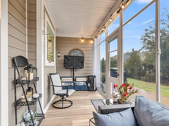 Location, Location, Location. Welcome to your dream home in Cresswind at The Ponds! Nestled in this exclusive 55+ active adult community, this stunning Dogwood model is a 3-bedroom, 2-bath home that perfectly balances luxury, comfort, and privacy. Step inside to an expansive family room bathed in natural light, featuring plantation shutters and a ceiling fan for year-round comfort. The open-concept design seamlessly connects the family and dining areas to a bright room with an impressive 11' ceiling. The gourmet kitchen is a chef's dream, boasting GE gas range with GE Profile microwave, Venetian white granite countertops with stylish Landen Maple Umber cabinetry and undermount lighting. Large island with extended breakfast bar, tile backsplash and abundant storage, including a trashpull-out and full-extension drawers. Enjoy indoor-outdoor living with a spacious Sunspace enclosed screened porch (complete with lifetime warranty), perfect for dining and entertaining, plus a concrete patio for grilling and outdoor enjoyment. LVP flooring extends throughout the main living areas, adding elegance and durability. The primary suite is a serene retreat with LVP flooring, Tray ceiling and plantation shutters a Custom walk-in closet system for optimal organization. The spacious en-suite bath with walk-in shower and separate water closet for added privacy. The extended 4' garage has radiant barrier installed in attic the Pull down stairs leads to spacious well-lit floored attic. Entire home has 5" gutters. Beyond your home, Cresswind at The Ponds offers resort-style amenities, including:Private clubhouse with an art room, demonstration kitchen, and gym, Adult-only & family resort-style pools, Bocce, tennis, and pickleball courts, Sidewalk-lined streets for leisurely walks, Full-time social director coordinating vibrant community events. All this, just a short walk to the clubhouse and amenities! Don't miss your chance to own this exquisite home in a thriving, active community. Schedule your tour today!