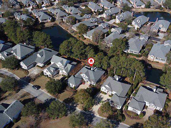 From the moment you step inside this lovely low maintenance home with 1 level living in the luxurious golf & tennis community of Landfall, you'll be drawn to the ease of living, and most importantly, the serene setting. Situated on a peaceful pond, you'll want to spend hours on the back patio under the pergola watching waterfowl glide along the glistening water, soaking in the soothing sunshine & tranquil breeze. Inside, wood floors greet you & continue throughout the living, dining & sleeping areas of this open floorplan, including the Great Room with cozy gas fireplace with built-ins – perfect for a good book & soft blanket on those winter nights. Your 1st floor Primary Retreat includes a separate tub & walk-in shower, 2 marble sinks, 2 linen closets, walk-in closet with safe, and patio door. Create culinary masterpieces in your light kitchen with beautiful countertops, center island & stainless appliances. A new roof in 2022, new HVAC 2021, repainted exterior in 2021, new overhead garage door and new exterior patio doors allow you to move in & start enjoying all our area has to offer. Other features of this well maintained home include water view from the front & back, metal hurricane shutters, laundry room with sink and plantation shutters. Landfall is only minutes to Wrightsville sandy Beach & the area's best shopping & dining