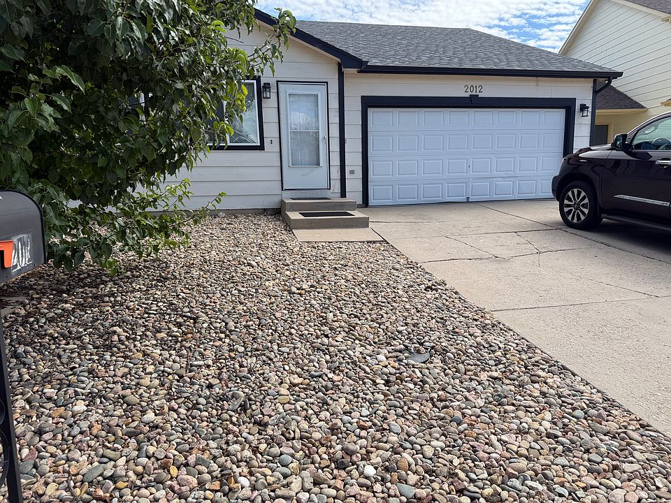 There is a small back yard with cement pad with access off the master bedroom or side yard. This home has a 2 car attached garage with double driveway pad for parking.