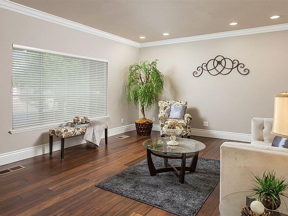 Highly upgraded one-story custom home in gated community with pool & detached guest house with kitchenette & full bath. Granite slab kitchen counters, stainless steel Bosch & Thermador appliances. Built-in Sub-Zero frig. High-end custom kitchen cabinets that are extremely water & chip-resistant. Deep, rich 3/4" solid Bamboo floors and plush carpet just installed. Beautiful limestone floors in entry and kitchen. High-end lighting/plumbing fixtures. Rheem "instant-on" water heater means fast hot water at the faucets. Pebble-tec pool has beach entry & rock waterfall. Several mature palm trees. Master bath has slab marble shower surround and counters.