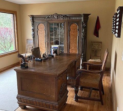 Make Family memories in this Spacious 4bedrm,3 bath home.Plenty of living space thought-out,total about 3480 sqft.Relax in your cozy screened in porch that walks out to deck over looking beautifully peaceful view of woods,no one can build behind you.Nicely landscaped yard.Walk into conveniently located home office/relaxing sitting rm.Open floor plan,Great room has high ceiling & walks out to screened porch.Kitchen has plenty of cabinets & granitic countertops,nice lg Island overlooks dining area.1st floor laundry.Master suite has access to porch,walk-in closet & full bath,jetted tub+shower.Split floor plan,2 bedrms in separate area has access to a full bath.4th bedrm/guest rm & full bath,located in the finished walk-out basement that has 2 fireplaces,large family/entertaining area for family & friend get-togethers has wet bar.Walk out to covered patio over looking Private back yard great for outside entertaining.Lg utility rm for storage or make a work out rm.Newer roof,gutter guards.