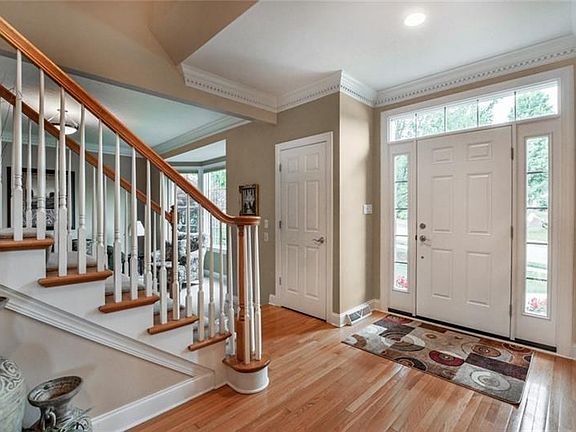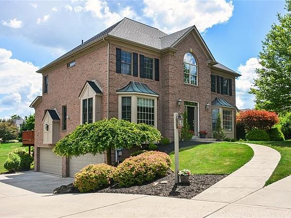 Treesdale amenities in the Pine Richland school district. Barrington custom home with A four car garage! Many updates including: new roof, new gutters, new shutters & more! New front door (trim around door will be painted) leads to two-story foyer with hardwood floors. Living & dining rooms both offer dentil crown molding. Kitchen has granite counters, maple glazed cabinetry, new stainless double oven & microwave & separate eating area. Family room has two new skylights, gas fireplace & door to deck. French doors open to first floor den with built-ins and new windows. Master bedroom with cathedral ceiling, walk-in closet, sitting room & two new windows. Master bath with new skylights, separate commode room & jetted tub. Two guest bedrooms share Jack-n-Jill bath; the other has its own private bath. Finished walk-out lower level with full bath. New water heater. Deck has new concrete patio below. Whole house speaker system. Additional heating system in basement. New garage doors