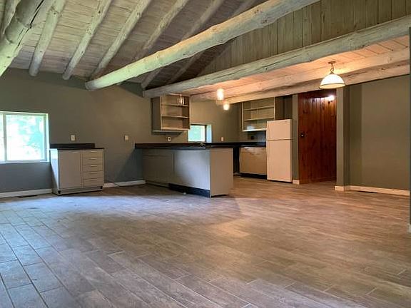 Many possibilities with this unique property! Renovated Ranch with cathedral ceilings and exposed beams. Open floor plan, wood burning fireplace with stone mantel. Many updates to include: roof, eat-in kitchen, flooring, bathroom, siding, updated electric & high efficiency furnace. French doors open to the back deck. Attached 2-car garage, PLUS under 1-car garage with plenty of storage. Within 10 minutes from Cornell.