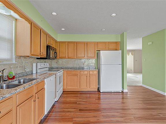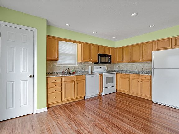 Well maintained end unit townhome with a 2 car garage. Spacious E-I-K features a pantry for storage , granite countertops , ceramic backsplash and sliding door to the deck. Family room is steps away and features a handy closet. Dining room has a beautiful crystal chandelier and custom drapes that can also be found in the adjacent living room. New garage door openers in 2022. A/C new in 2021. New furnace in 2016. Windows replaced in approx. 2016. 150 amp electric service. All 3 bedrooms are located on the upper level and offer plenty of closet space. Master bedroom has a vaulted ceiling and 2 walk- in closets. Master bath has a walk in shower. Bedroom #2 has a walk- in closet. Large laundry room /multi purpose room offers additional storage with easy access. Neutral carpet on 2nd and 3rd floors was just cleaned. Coat closet in entry way below steps. Home warranty included. Lot size, room sizes and taxes are approx. Very clean home and ready to move in.