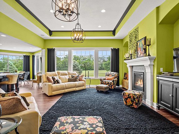 Custom home with 5 car garage on 10th fairway with views of woods, pond, covered bridge and additional fairways (no view of other homes). Upper level has second stairwell private entrance; could be used for mother-in-law apartment with its own kitchen, laundry, bathroom. Bonus room has large walk-in closet and could be considered a 5th bedroom. Dolby Atmos 11.1 surround theater, all appliances including washers/dryers and wall mounted TVs stay with home. Home has 2x6 walls, Andersen 400 series SmartSun windows, dual zoned HVAC, 80 gallon Marathon water heater, Aqua systems water softener and osmosis, yard irrigation system, and many more upgrades!!