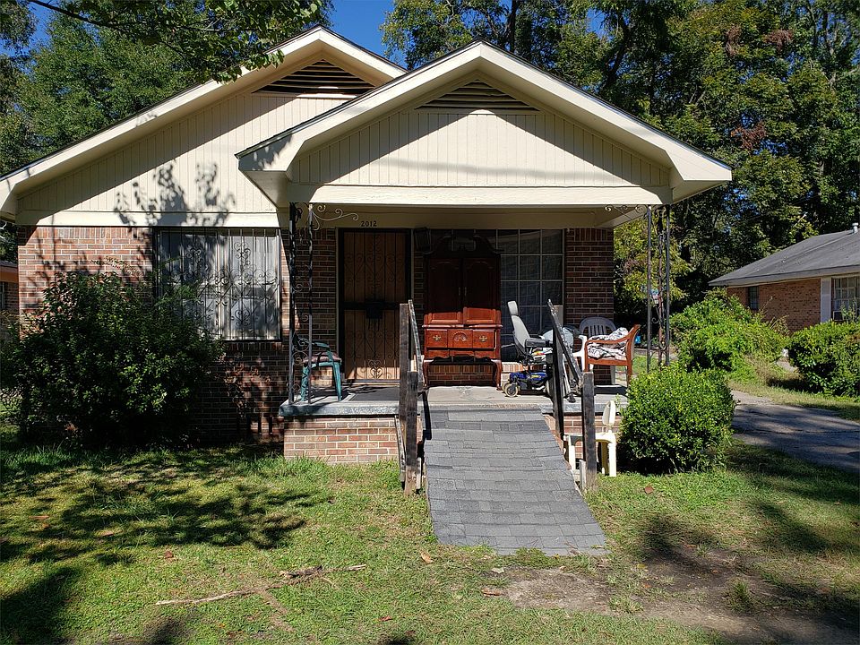 Two or three bedroom brick house. Covered front porch area and nice size storage shed in back. Two bedrooms located off the hall from living room. Third bedroom is quite large and has access to the backyard and laundry room. Could be used as a second living room or third bedroom.
