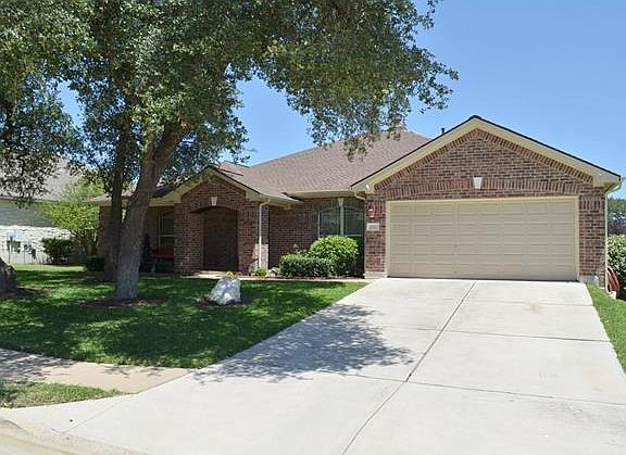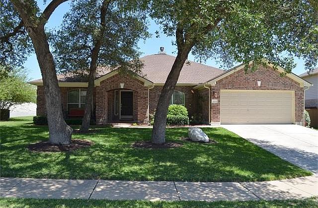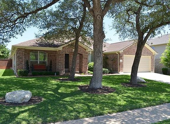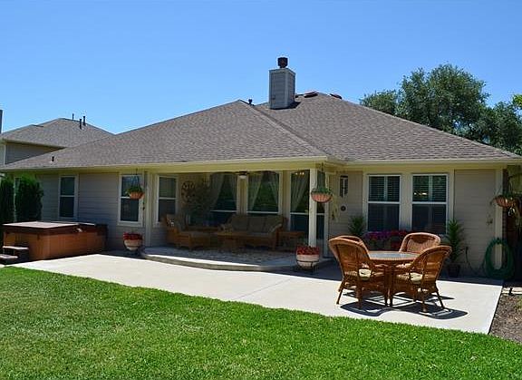 Immaculate 1 story home w/gorgeous oaks located in desirable Boulders at Crystal Falls~well maintained 4 bed *4th bed/office/study w/closet & french doors* formal dining area~extended tile~open floorplan w/ lots of natural light~counter height solid surface kitchen island~builtin appliances double pantry~spacious master w/2 closets~enjoy the private backyard w/sprinkler system, covered extended patio & hottub~inviting front porch~lightrail/shopping nearby, crystal falls golf couse~excellent Leander ISD