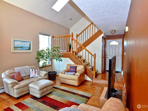 Character, sun and a wonderful open floor plan combined with a huge back yard makes this the perfect home! You'll love the vaulted ceilings with 2 huge skylights in the living room, cool exposed beams and great southern exposure. Main floor has a large (third) bedroom and 3/4 bath and convenient laundry off the kitchen. Sun drenched kitchen looks out to your back yard and beyond to Little Mountain. Upstairs is a wonderful primary suite with attached full bathroom, walk-in closet and views South. The second bedroom is also good size and looks to the front making for a good bedroom or office space. A newer gas fired boiler heats the home economically with even radiant heat. Plenty of room in the 1 car garage and bonus RV/Boat parking too!