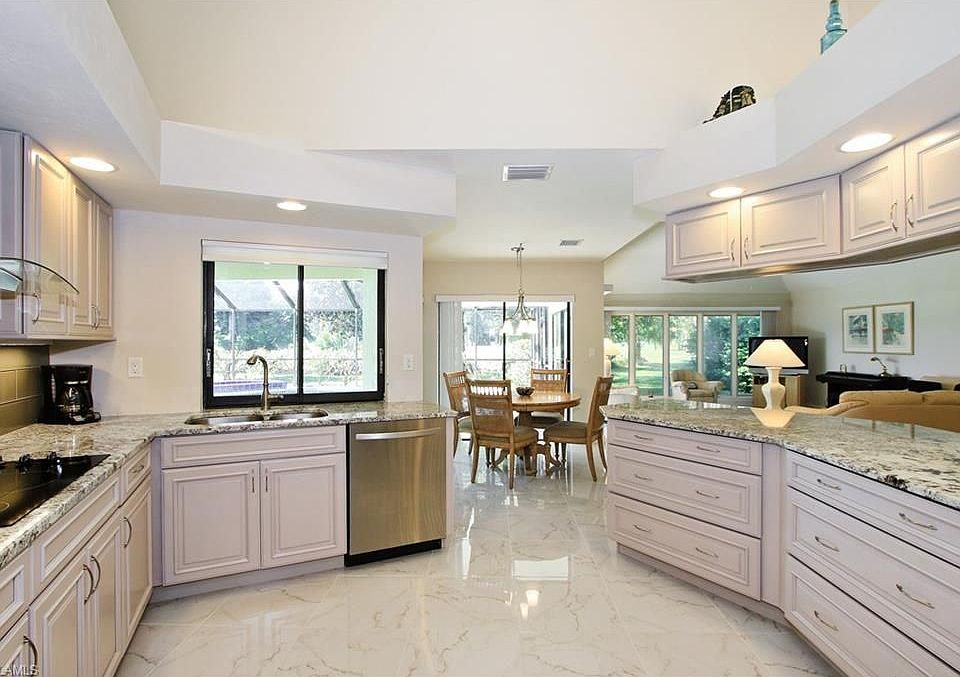 H.11270 - Tastefully remodeled from top to bottom within the past 2 years. Neutral tones flow throughout this beautiful , open and spacious golf course home. Large porcelain rectified tile, new grey tone cabinetry and gorgeous upscale granite adorn all baths and kitchen. Large windows bring the outside in. The family room is spacious and open to the kitchen with high ceilings and lovely finishes. A built-in wet bar is perfect for entertaining. There is a new tile roof and new skylights to current hurricane code. The covered lanai has ample room for a dining table and conversation group. Enjoy the oversized pool on our warm Florida days. New gas heater for the spa makes it heat up quicker. This is a delightful home sure to please with its light and bright ambiance and its move right in condition. The AC, Water heater and gas pool heater have all been replaced in the past 2 years as well. Add wonderful golf course views with the perfect blend of privacy, sunsets and paver driveway to make this a don't miss property.
