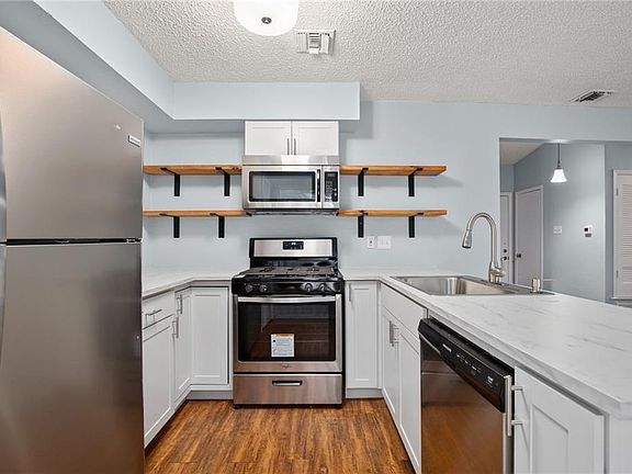 South Austin Gem! Great South Austin Duplex with no shared walls! Large size 2 bedroom, 2 bath! This property features: Large deck overlooking the creek, new paint, new lighting and ceiling fans, blinds, new counters, appliances, cabinets, new bathroom vanities, mirrors, and light. Attached single car garage with washer and dryer connections. Gas cooking in kitchen. Vaulted ceilings, and wonderful layout for entertaining.