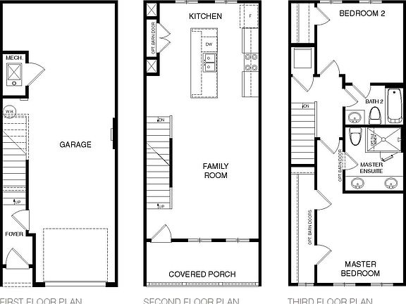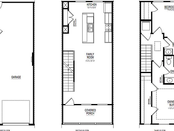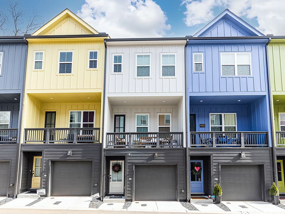 The Maxwell floorplan features open concept living on the middle floor with an oversized kitchen island and a covered porch. Chefs and entertainers alike will enjoy the spaciousness of the kitchen and connected family room, and the built-in kitchen pantry offers an abundance of storage. The top-floor offers a private owner's suite and bath with a secondary bedroom and bath for a roommate or guest. The first floor includes a 2-car garage. Colorful exteriors bring vibrance and the unique character of Kirkwood into this new neighborhood.
