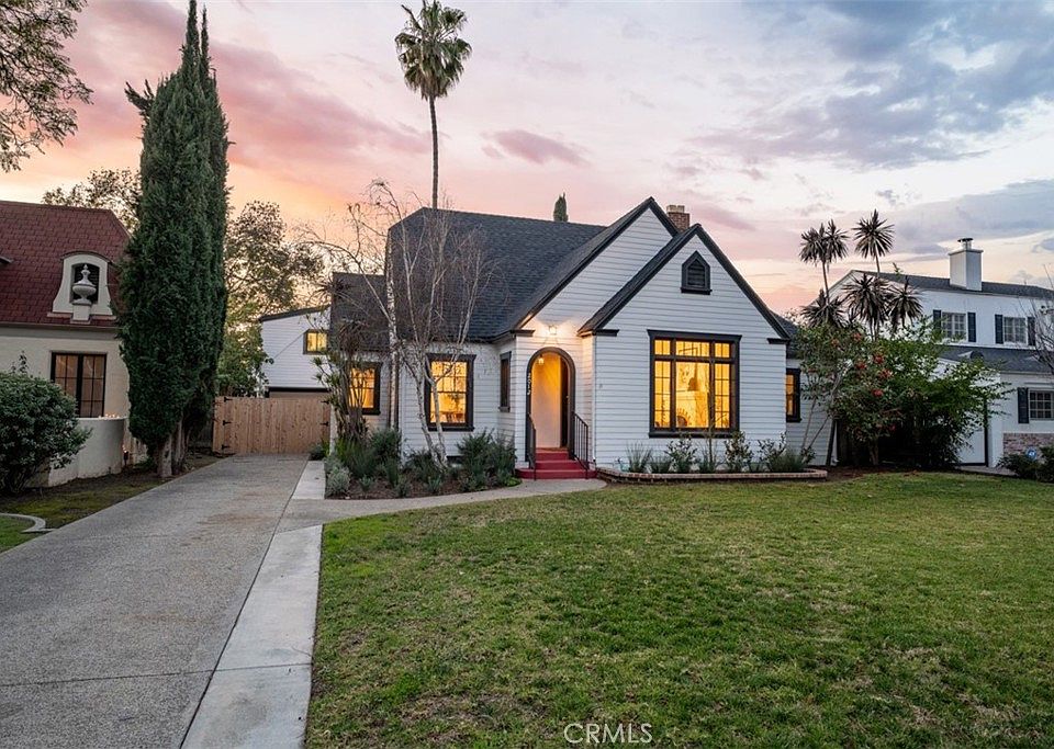 Luxury Live Auction! Bidding to start from $1,200,000! This delightful English-style cottage and guest home is located on a spacious lot in the beautiful and historic Floral Park. Recently redesigned by a talented, well-known designer, this modern home still pays homage to its original charm and is eligible for a Mills Act designation. The lot spans over 10,000 sq ft and features a brick patio, fire pit, and plenty of space for a pool, a perfect place for a family to relax in the outdoors or the perfect place for all of the outdoor dinner parties and BBQs. The property boasts updated plumbing, insulation, hardwood flooring, tile work, counters, and new paint, windows, and roofing. The main house offers 1,474 sq ft of living space, including a living room, dining room, three bedrooms, and 1 & 3/4 bathrooms, as well as a stunning gourmet kitchen. The kitchen features top of the line appliances and finishes including, quartz countertops, brass finishes, handmade tile, Bosch refrigerator, Bertazzoni stove, pot filler, and custom hood with a breakfast nook. The living room provides a comfy communal space with a stunning large window, creating an open, and well-lit space. The guest home is a fully remodeled two-story, 432 sq ft studio with a full bathroom and kitchen area. The downstairs area could be converted into an office, or studio of your choice. The space was designed to flexible to the owners desires. Enjoy the tree-lined streets and well-manicured landscapes of Floral Park, known for its stunning historic homes and located close to downtown Santa Ana for easy commuting, amazing restaurants and shopping!