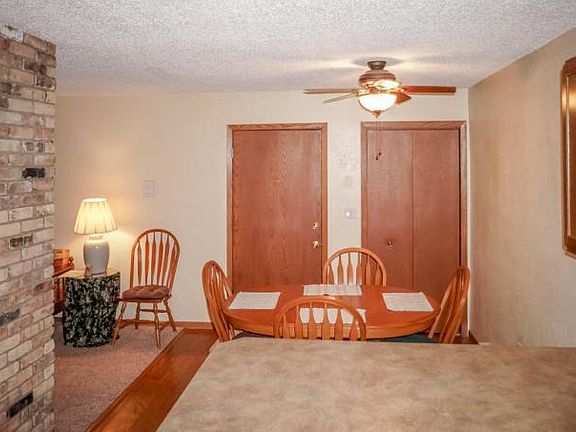 Nicely kept 2 bedroom, 1 bath condo with beautiful wood floors and neutral decor. Condo features floor to ceiling brick wood burning f/p, newer bathroom flooring, counter top and fixtures, newer carpeting too! Washer and dryer hook-ups are in units. No pets. HOA is $145 a month. Call REALTOR of your choice for info!