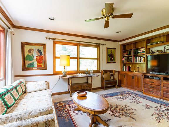 A must see family home that contains 2268 in a Fox River community subdivision. Over 1.5 acres sets this sprawling ranch + a second floor suite, great for your own master bedroom or private guest quarters. Custom crafted home features an enclosed entryway/foyer.Custom built-ins throughout the house, spacious living great room with vaulted ceilings and stone fireplace, massive picture windows. Family room/TV room with custom shelving. L shaped galley kitchen step down eat in kitchen with Franklin stove. Plenty of counter work space and cabinets for storage, additional butterfly sink. Spacious laundry room with cabinetry. Outside/exterior is a nature peaceful sanctuary. Pond views, paver patio, walkways, Rock stone gardens, 100 year old oak trees, circle driveway. Every window view looks out to nature with wildlife. Venture to a 800 square-foot 3-car garage, large furnace heated shop, drop down stairway to second floor attic/storage. A great spacious family home!