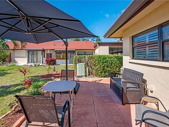 PRICE IMPROVEMENT and offering a 1 YEAR Home WARRANTY at close! Beautifully updated southern exposure end unit villa with 2 bedrooms and 2 bathrooms in Boca Ciega Manor, includes TWO carports and TWO storage units. This fully furnished home is a peaceful retreat close to the vibrant heart of downtown Naples and the beaches. The open-concept design seamlessly connects the living and dining areas, creating an inviting atmosphere for relaxation and entertaining and leads directly outside to your private patio. The home has all tile floors. The windows and doors are impact and the roofs are newer with new wind mitigations. The Florida room has 2 ELECTRIC shutters. The side windows have manual shutters. The updated kitchen has quartz countertops, a built in pantry, several cabinets have pull outs, the range is newer, and a low profile Over-the-Range microwave. The community pool fence is being replaced soon and will be a bronze aluminum fence. This home offers easy access to local attractions, shopping, dining, and the beautiful Gulf Coast beaches. With its prime location and comfortable living space, this home presents an excellent opportunity to experience the best of Naples living.