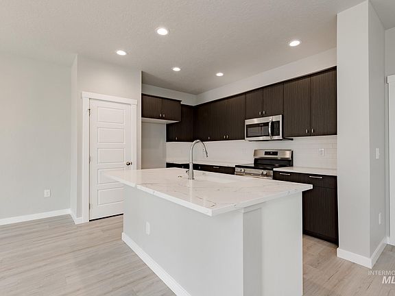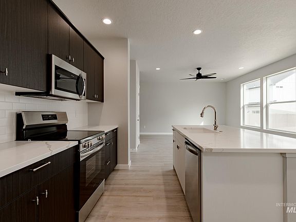 Feel enriched in your brand new home located in Meridian, Idaho! The Lochsa 1678 floorplan is a two-story home that seamlessly blends functionality with modern design. Downstairs, you'll discover a practical half bathroom, offering convenience for both residents and guests. The hallway leads you into the heart of the home, an open-concept living area where the kitchen and living room come together, creating a welcoming space for gatherings and daily life. The kitchen comes with stainless steel appliances and stylish solid surface countertops, adding both functionality and aesthetics to the kitchen. An additional full bathroom serves the two generously-sized bedrooms, streamlining morning routines. The primary suite is a standout feature, complete with a walk-in closet for your wardrobe and storage needs. Photos are of actual home!