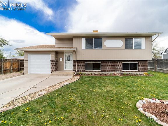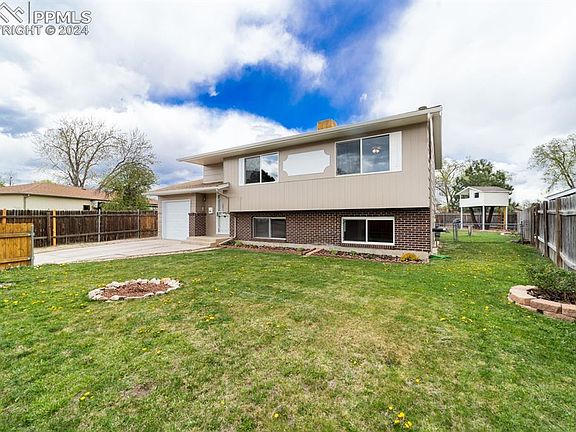 Beautiful mountain views and a HUGE, flat lot… ready for Summer BBQ’s & fun! A Treehouse is a bonus! This 3 bedroom, 2 bathroom, bi-level home sits on over 9,000 square feet in the Stratton Meadows community. The property is clean, well-kept and features solid oak banisters and trim-work, travertine tile in the kitchen, RV parking, large, covered patio/deck, and a beautifully landscaped yard with healthy grass and many new plants and bushes. Walking distance to Meadows Park and Meadows Park Community Center offering after school care, kids summer programs, senior workouts, food pantry every other week, trail runs and much more! Easy access to i25, Downtown, Fort Carson, and plenty of outdoor activities. Updates include new insulation in the attic (16 inches), insulated bi-level overhang, new garage door opener, water heater 2020, furnace 2020, new privacy fence in the front, new French doors from kitchen to patio, new low flow toilets, new lower-level bathroom vanity with LED light up faucet and new backsplash, fresh bathroom and kitchen grout, freshly painted and so much MORE. A must see!
