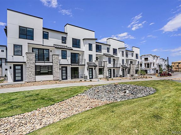 Brand new, move in ready townhome in Virginia Village, centrally located in the heart of Denver. Enjoy the expansiveness of the Oliver floorplan as soon as you enter. On the lower-level you will find a private suite; whether this space is needed for work, family, or wellness. Feel the openness of the main floor with spacious living, kitchen, and dining areas that lead to a large patio - perfect for entertaining. Leading up to the upper-level is a conveniently located powder bath. The upper-level houses 2 guest bedrooms, a secondary full bath, and the master suite that features a walk-in closet, dual vanity, and luxury shower. Stay organized with a walk-in pantry, attached 2-car garage space, and plenty of cabinet space throughout. Other included features are ceiling fan-prewires in great room and all bedrooms, video doorbell, keypad entry, electric vehicle and solar ready wiring in garage and smart thermostat. Photos are of our Oliver model home, updated photos of this exact unit coming soon. This unit features gray shaker style cabinets, white quartz countertops and modern fixtures throughout.