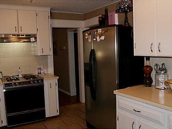 Wonderful kitchen in this lovely 3bd/1ba home and it includes a wood burning fire place in the family room, a formal dining room, master with large closet/dressing area, neutral colors, covered patio with rock flooring, fenced back yard and a garage. Curtains in master bedroom do not convey.