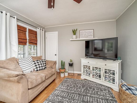 Welcome home to this adorably updated 2 bed/1 bath/1 car ranch located in the heart of Wichita. You will fall in love with the charm of this home as soon as you pull into the driveway. From the well-manicured yard and tasteful landscaping to the wooden post lined front porch and white shutter surrounded windows, the curb appeal is eye-catching. Inside, you will find modern updates that include neutral paint with white trim, updated brushed nickel fixtures, and newer wood laminate flooring throughout the main living areas. The bright kitchen features white cabinets with updated hardware, stainless steel appliances (refrigerator does not convey), and decorative wooden floating shelves for extra storage. The bathroom has also been completely updated with tile flooring, a pedestal sink, and shiplap walls that make it look like it's right out of a designer magazine. In the partially-finished basement, you will find additional living space with a gorgeous brick-faced fireplace as the focal point of the room. There is also a separate room that is ideal for added storage space. The outdoor living space is just as impressive with a large concrete patio that is a great spot for entertaining in the fully-fenced backyard. Parking space is abundant with the 1 car detached garage, as well as a recently poured concrete slab out back that would be great for boat, RV, or extra off-street parking. In addition, the shed in the backyard remains for storing all of those lawn and outdoor tools and toys. This home is located within walking distance to Gardiner Elementary school and is close to highway access, groceries and restaurants. This one will go quickly, so call us to set up your private showing today!