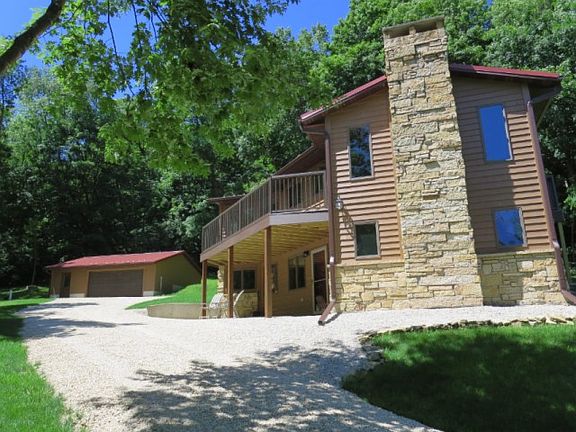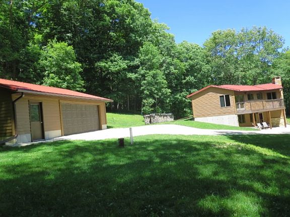 This home & acreage sits overlooking the Upper Iowa River w/approximately 700 ft of frontage on the river. The 21.8 acres is almost completely wooded, except for 2+ acres which is ideal for food plots, garden & recreational use. This home is in 'like new' condition. Cedar siding, steel roof, Anderson windows, new composite 27x8 front deck. Detached 2 car GA, 30x26 built in 1999. Main level consists of kitchen, dining room, living room, stone fireplace, full bath and large bedroom. The Lower Level has a large family room w/wood burning stove, 3/4 bath, bedroom & utility room with laundry area. Along with excellent deer and turkey hunting, fishing and canoeing, this hard to find property is sure to please the outdoor enthusiast!!