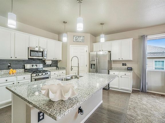 Beautiful Ranch home which shows like a Model and backs to Open Space! Light and Bright with gorgeous fixtures! This open floorplan, with great room, is perfect for entertaining. The kitchen has ample counter space with a beautiful granite island and walk-in pantry. The kitchen is appointed with stainless steel appliances to include refrigerator, gas range, dishwasher, microwave and white cabinetry with crown molding. The spacious Primary Suite has a large bathroom and a large walk-in closet. Three additional bedrooms, additional full bathroom and a large laundry room allows your family flexibility! The unfinished basement with studded bath, sump pump and radon mitigation system allows you control to expand if needed. Beautiful landscaping in the front yard welcomes you home and a wood deck with fully fenced backyard keeps your four legged family members exercised. Additionally, the clubhouse, pool and fitness center provide a gathering place to bring residents together. Close to schools, shopping, downtown Castle Rock and I-25.