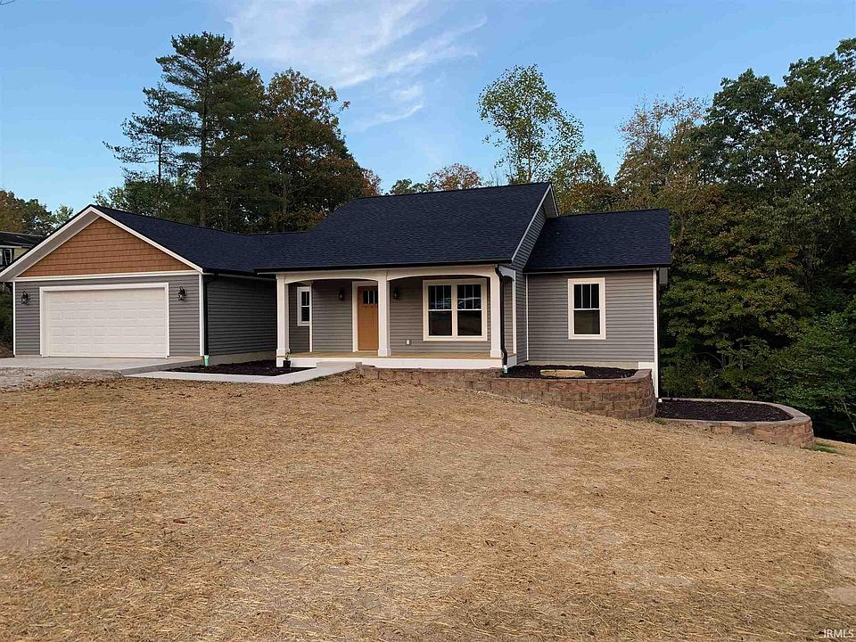 A RARE find in Brown County, NEW construction just outside of the artist village of Nashville! This gorgeous quality built home is situated on 1.80 acres, featuring master suite & laundry on main level, 2 additional bedrooms, open concept floor plan, stylish design including pocket doors, six panel doors, high quality laminate, 2 car attached garage, full basement with poured concrete walls & 9' ceilings. The kitchen has an abundance of Amish Cabinets, eat-in island, granite counter tops & stainless appliances. Enjoy nature off the back deck or an evening on the stylish front porch. Home is connected to Town of Nashville Sewer & Water. The basement has plumbing installed for a third bathroom & would make a perfect over-sized family room.