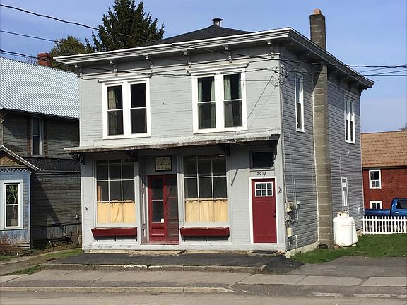 This is an old style building in a small country town on a State highway that could be used for your start up business, a new location for an existing business or convert it to a 2 family home for rental income. New roof 2018, water heater 2019, new appliances and new windows upstairs are just some of the updates. Harwood floors throughout along with some of the old character and charm.. There are separate electrical entrances and heat sources in place. This property has been a cafe, a flower shop and a thrift store through the years. The apartment upstairs is ready to move in. There is so much opportunity in this location!