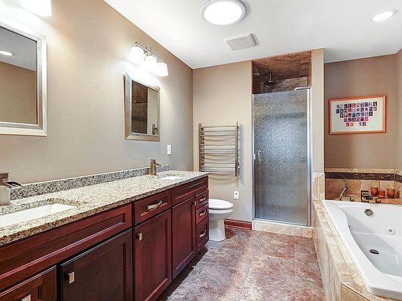 Quality, comfort and stunning design! Extensively remodeled in 2014, this spacious multi-level home offers exceptional quality; solid wood raised panel doors, 5'' trim moldings, granite counters, soaring ceilings, walls of (Pella) windows, Garage Tek wall storage system. Relax in the open, sun-filled dining, family room and kitchen, complete with stainless steel appliances, soft close drawers, pull out shelves & walk-in pantry. This comfortable room is sure to be the gathering space for family and friends. Patio doors lead to a stamped concrete patio overlooking a private, beautifully landscaped yard. The spectacular master suite includes a spa-like bath with whirlpool tub, multi-head shower, double sinks & heated towel bar, 2 walk in closets. Truly a magnificent home!