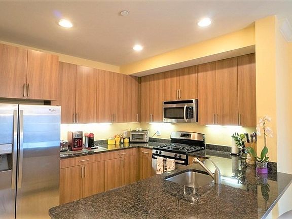 This end-unit condo features three levels of living. The top floor features two bedrooms, each with their own en-suite bathrooms. The master bedroom has a walk-in closet. There is a washer/dryer located right outside the bedrooms. Both bedrooms are carpeted. The rest of the condo features golden bamboo flooring. The first floor has an open flow. You enter into the living room that leads into the kitchen and dining area. The kitchen has granite countertops and stainless steel appliances. There is a balcony off the dining area. There is direct entry from the one-car garage into the lower level of the condo. The wide hallway leads to a bonus room that can be used as a guest room or an office. This condo is great for both young professionals, as well as families! Tenant responsible for all utilities, including water.