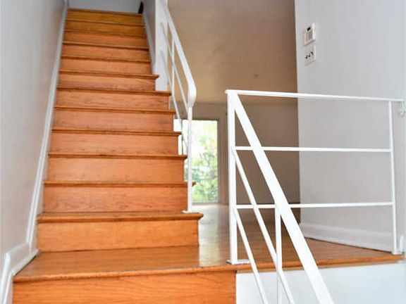 3 bedroom 1 bath center row on a quiet street. Huge living room with sliders to rear yard and hardwood floors. Large eat-in kitchen with plenty of cabinet space. 3 nice sized bedrooms and full center hall bath on upper level. Finished portion of basement has closet and can be used as a bedroom. All bedrooms have brand new wall to wall carpet. Basement laundry. Garage include work bench. Make an offer today