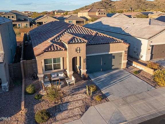 PRIDE OF OWNERSHIP. Gorgeous home that shows like a model in sought after Fireside at Norterra, only 1/4 mile away from community center. This mockingbird model features a split floorplan with an open concept. At back of home is a large master suite with a huge walk-in shower, double sinks and oversized walk-in closet. Meticulously maintained home with beautiful upgrades including granite, stainless steel appliances, refrigerator, upgraded staggered cabinets with crown molding, walk-in pantry, pendant lights, ceiling fans, 12 foot slider at patio, large tile and smart home hub to control many different devices. In the garage you will notice the overhead storage racks, water softener, service door, 240 volt Tesla outlet and wi-fi garage door opener. Front and backyard have been professionally landscaped to be low maintenance entertainment spaces to enjoy the beautiful mountain views and Arizona sunsets. Gas stub at firepit area that could also be used for a BBQ. Relax in the backyard with artificial grass, pavers & beautiful views. The community center at Fireside at Norterra includes: Heated lap pool/jacuzzi, play pool, tennis courts, basketball court, fitness center, rock wall, steam room, billiards & hiking trails! Don't miss this opportunity for this rare home!