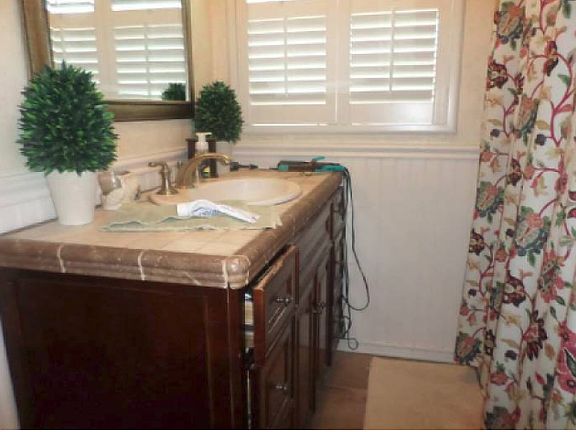 - RoomBathroomFeatures: Low Flow Toilet(s), Shower in Tub, Remodeled, Exhaust fan(s), Tile Counters, Linen Closet/Storage