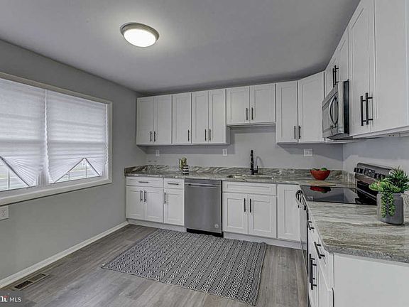 Beautifully renovated 3 bedroom end unit townhome in sought after Quail Meadows! FULLY REMODELED from top to bottom to include new ROOF, new HVAC, all new WINDOWS and sliding glass door, kitchen with white cabinets, granite counters and all new stainless appliances, fully renovated baths, new flooring and carpet, fresh paint, new fixtures....the list goes on! Lower level is finished with spacious family room, free standing wood fireplace, recessed lights and ceiling fan, powder room and large laundry/storage room. Great privacy with this fully fenced rear yard on a huge corner lot * Abundant parking * Community pool and tennis court * Close to shopping, public transportation, schools, Social Security Admin, BWI and major routes. Occupied purchases only.