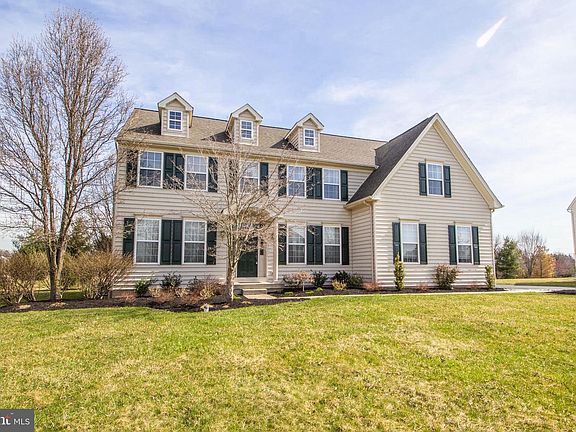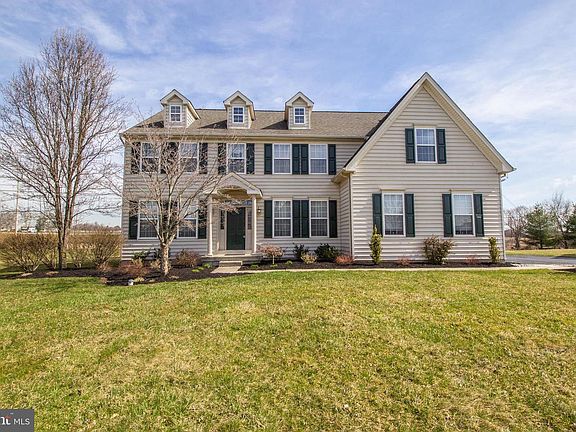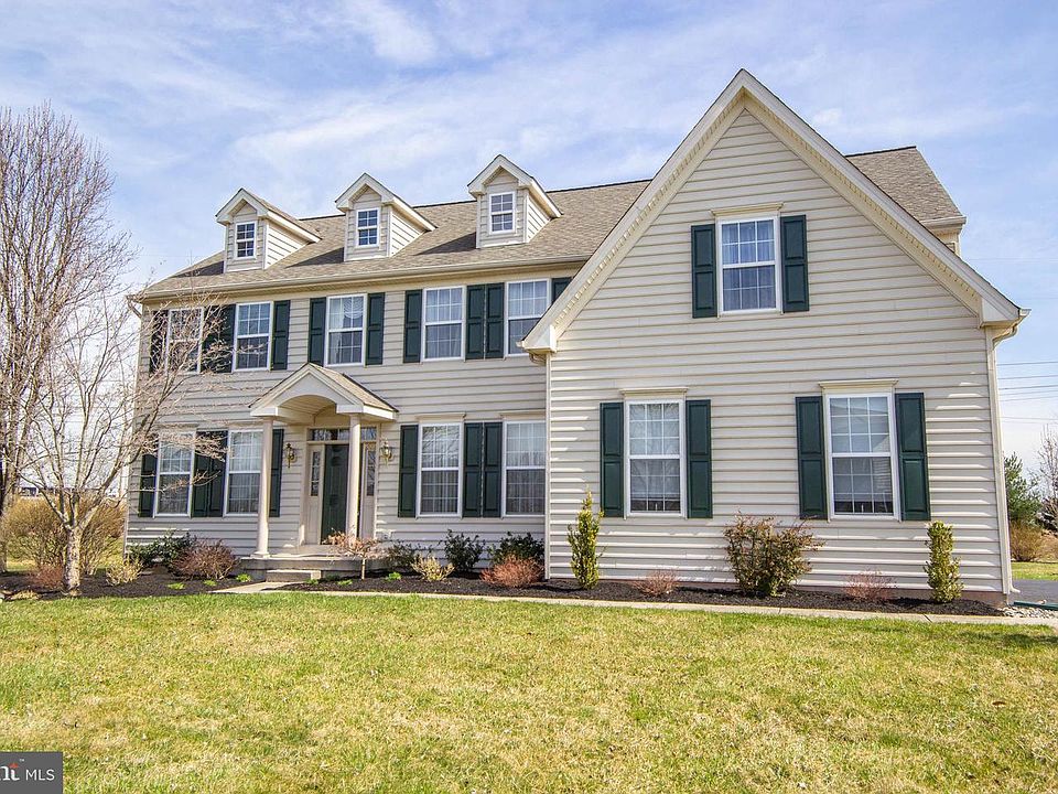 Lovingly maintained by the original owner, this beautiful 3,100+ square foot home boasts hardwood floors, updated kitchen, soaring ceilings, and delightful architectural features every homeowner desires. The grand two story foyer splits the living room and open dining room before guiding one to the oversized kitchen, featuring gleaming granite countertops on the extended bar top island, as well as, workspace. A sunroom, banked by windows, is adjacent to the kitchen and is currently used as a breakfast room. The gigantic deck can be accessed from the breakfast room and viewed from the family room, perfect for summer parties or evenings overlooking the farmland behind the home. The open floorplan leads to the two story family room, brightly lit by a wall of double windows, with a fireplace to lend ambiance. A dedicated first floor office is tucked alongside the kitchen for unobtrusive concentration on the business of daily or work life. The second staircase leads to the master suite of rooms: a comfortable bedroom with trey ceiling, cozy sitting room, spacious closets, and private bathroom with soaking tub. Three bedrooms, a shared bathroom with double sink, and large laundry room round off the second floor. The finished basement, with full bath, can be used for multiple purposes, including media room, playroom, fitness/exercise room, workshop, additional office, and has plenty of storage! This is truly a one of a kind home, waiting on the next family to wrap in its warmth, joy, and love. Owner offering $3,000 seller's assist with approved contract.