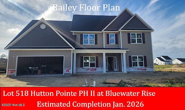 The ''Bailey'' floor plan is under construction in the Hutton Pointe phase at Bluewater Rise. Builder offering up to $10,000 buyer's closing cost incentive w/ use of preferred attorney & lender! This large floor plan has 4 Bedrooms, 3.5 baths. & nearly 3,600 heated square feet. Features include a 1st floor master bedroom suite w/ 3 additional upstairs bedrooms, a loft, & bonus room w/ closet Granite counter tops in kitchen. Breakfast bar & nook that leads out to a covered back porch. Creekside school district!