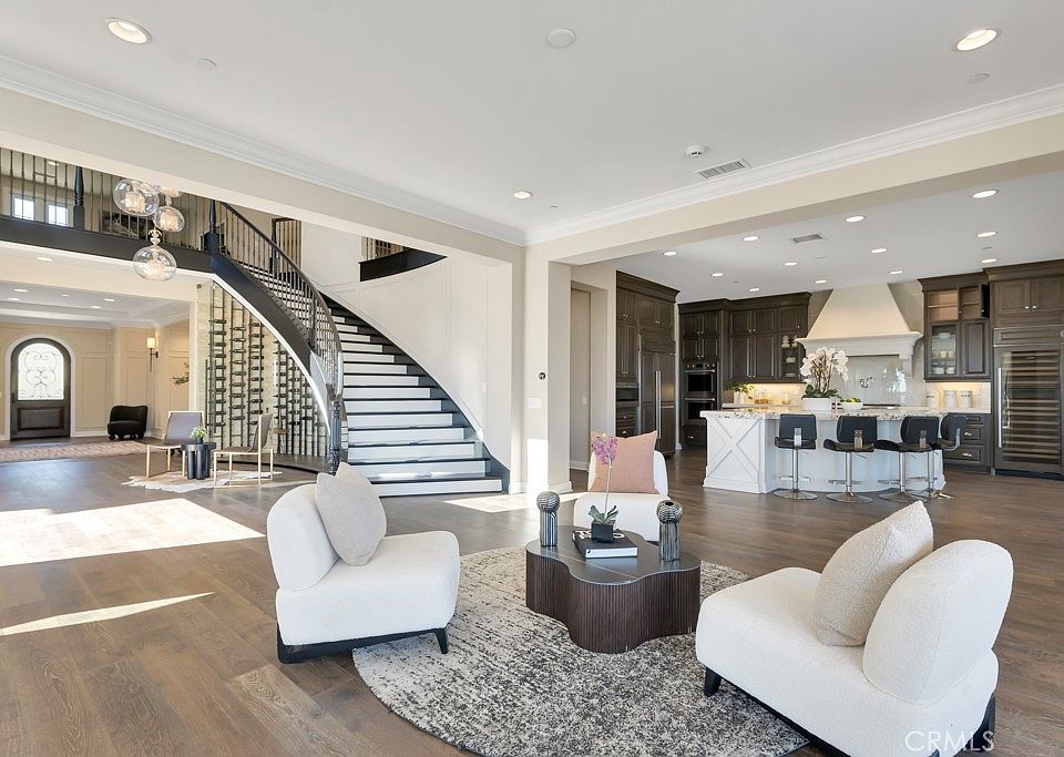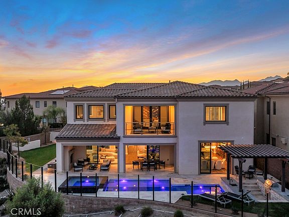 Stunning luxury estate with panoramic views, ideally positioned at the end of a peaceful cul-de-sac in the exclusive, 24-hour guard-gated Westcliffe at Porter Ranch community. One of the larger properties in the neighborhood, this impressive Spanish Colonial Palisades model by Toll Brothers offers 5,710 square feet of refined living space, featuring 5 bedrooms, 5.5 baths, and an additional flexible room located just behind the kitchen.