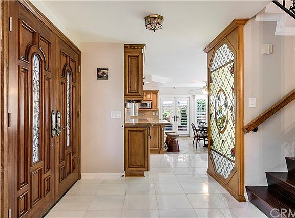 Welcome to this wonderful Landmark home! This is one of the larger models. Its 3,000 square feet offers sprawling living spaces, generous bedrooms and a great bargain. The homeowner has made the perfect selection of improvements to make this a wow-house. High end marble and laminate flooring, textured ceilings and beautiful designer paint colors are used throughout the house. This home has upgraded plantation shutters on newer dual-pane vinyl windows. The kitchen has been newly remodeled with high end cabinetry and of granite counter tops. There is a large bonus room downstairs, perfect for entertaining! It comes with complete built-ins, wet bar and wine fridge. All bedrooms are upstairs, including two master suites! One of the suites is extra large with an enormous walk-in closet and a shower with dual shower heads, a relaxing Jacuzzi and skylight. The private backyard has a covered patio and above-ground spa. The high-tech Solar panels and water softener are fully paid. This home offers cost-effective efficiency and convenience. In the garage, there are built in cabinets for plenty of storage and R.V. parking is possible. All of this along with award-winning schools in the area, make this the perfect home in the perfect location. Just minutes away from the beach, shopping and restaurants!