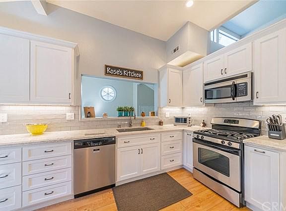 When only the best will do ! Truly one of a kind - Rarely on the market and hugely desirable in every way - Completely remodeled and located in a prime location of Seabridge - An entertainers paradise - All new kitchen with gorgeous cabinets and quartz counters with beautiful full backsplash - Stainless steel appliances - Enjoy all of the natural sunlight that shines in while cooking for that special evening party or gathering - pristine and turnkey ! - Gorgeous wood-like flooring thru out - Large separate dining area flows perfectly into living room - soaring cathedral ceilings - Striking stacked stone fireplace with fire and ice - Living room flows out to an awesome large enclosed patio that is nestled among the trees and greenery - Mirrored wardrobe doors - Master Bath has a separate shower and large oval tub perfect for a peaceful bubble bath - All done in beautiful Marble - Hall Bath is stunning with a pebbled flooring with glass enclosure Plus rich wood cabinetry- All upgraded lighting thru out - Bedroom windows have new shutters - Attached 2 car garage !!! Seabridge is a guard gated community that offers 4 pools, 4 jacuzzi's , 4 tennis courts and a large park - Just a short walk to the Beach, Huntington Beach Pier, Main Street, plus lots of great shopping and restaurants plus Pacific City - all just down the street !!! Dreams really do come true !
