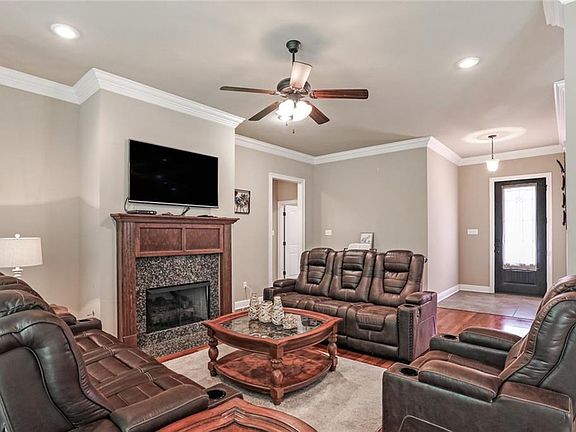 This home features split floor plan with crown molding, beechwood cabinets in kitchen, stainless steel appliances, granite counter tops. Foyer entrance opens up to living area with gas fireplace. Master bath has double sinks and sep. tub/shower, lagre master closet! Tankless water heater. Garage door enhanced with roll up screen door!! Furniture/refrigerator/washer/dryer-negotiable! Call today for more details!!