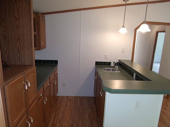A double wide, split plan, 3/2 with large family room/rec room. The kitchen features a center island, lots of storage, stainless steel appliances and a walk in pantry. The family room/rec room has a fireplace, a wet bar, built in cabinets and an area for a large tv. Hallway has a built in desk and cabinets for more storage. Large master bedroom and bathroom which have double sinks, walk in closet, large soaking tub with separate shower. Driveway has been excavated and new millings put down. New front deck with views and a new freshly mulched sitting area in the back. Kinetico water filtration and softener is in the laundry area. All of this minutes from town and on an acre of land. Priced to sell!