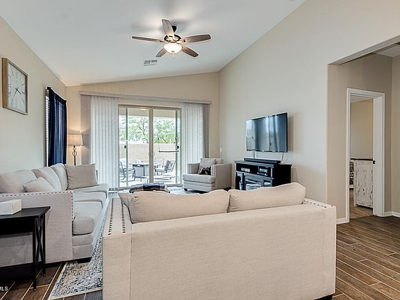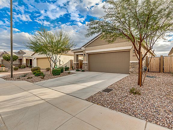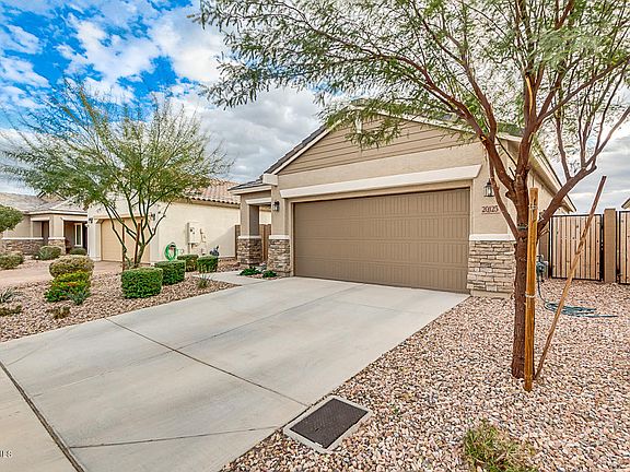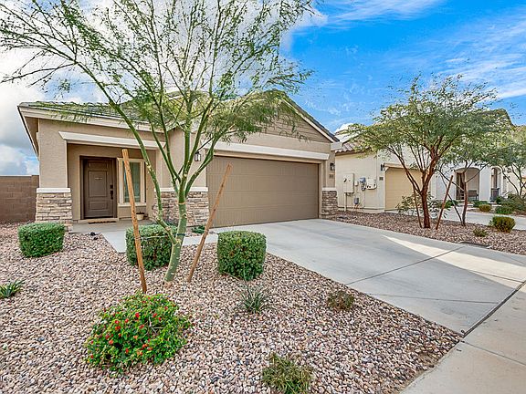 Amazing single level property in desirable Buckeye is the one you have been looking for. Gracious living at its finest! Featuring a low maintenance desert front landscaping, garage with built-in cabinets, and stone accents on the facade. Welcoming interior provides 3 bed, 2 bath, neutral color palette, living/dining area, vaulted ceilings, and several windows that bring in so much natural light. Well maintained eat-in kitchen has everything you need; sparkling stainless steel appliances, centered island with sink and breakfast bar, recessed/pendant lighting, and white cabinetry. Genuine master bedroom gives you an impeccable full bath with dual sinks and walk-in closet. Perfectly sized backyard with covered/paver patio and artificial turf is just perfect for your gatherings.