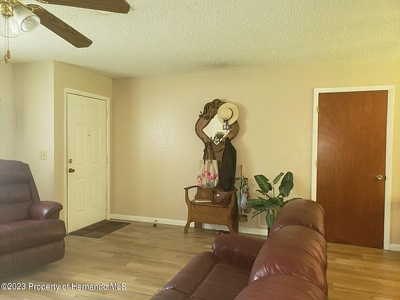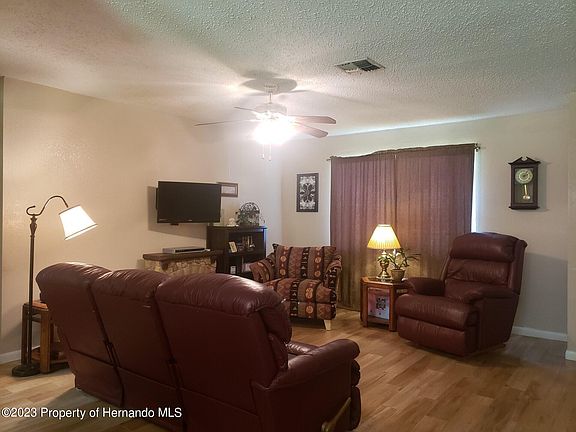 ACTIVE UNDER CONTRACT. Nice and clean 3/2 located in the city limits of Brooksville. The split plan has two bedrooms and one bath on one side of living area, and a large bedroom with a bathroom ensuite (shower, toilet, no sink) on the other side of the home. Roof new 2018. The tv wall bracket does not convey. Seller has mostly moved and can close quickly!
