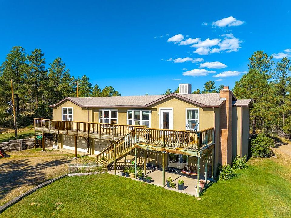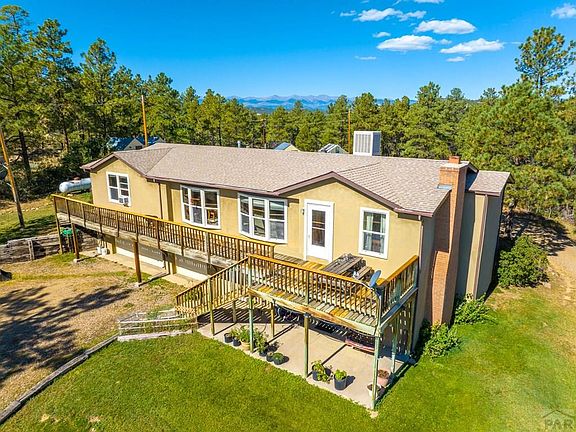 Nestled amidst 5 lush acres of towering pines, this expansive manufactured home offers a serene retreat brimming with natural beauty and modern convenience. The property is a haven for wildlife enthusiasts and nature lovers, providing exquisite views and a peaceful setting that's perfect for relaxation. This home features three spacious bedrooms and two full bathrooms upstairs, including a luxurious primary suite. The open-concept living and dining area is designed for seamless entertaining, complemented by a functional kitchen outfitted with updated appliances. The full basement is a standout feature, boasting a walk-out entertainment area that opens to the picturesque landscape. It includes an additional bedroom and full bathroom, making it ideal for extended guests or multi-generational living. The three-car attached garage provides ample space for car enthusiasts or hobbyists. Outside, the landscaped yard is a delightful extension of the home featuring storage buildings, a greenhouse, and both front and back decks. Unwind in the functioning hot tub on the back deck, where you can soak under the starry sky and savor the tranquility of your surroundings. Conveniently located just 30 minutes from Trinidad, this property offers easy access to all essential amenities while maintaining a private, retreat-like atmosphere. Experience the perfect blend of nature and comfort in this unique and inviting home.