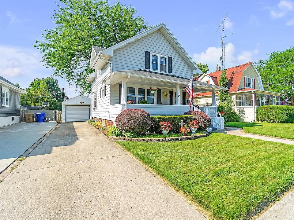 Nicely maintained 3 BR, 1.5 bath home with awesome yard (goes deep into what had been an alley)! Inviting entry leads to large living room. Separate dining room. Cute as a button kitchen can fit a small table; has white cabinetry and a pine ceiling . Nice character and charm throughout! All bedrooms and a full bath on the upper. Master bedroom has 2 closets. Lower level has a finished rec room, office/den area, plus a half bath. And still some good storage. Furnace, water heater and windows all updated. Roof approximately 10 years old. Outside ... front porch for relaxing and enjoying the breeze; paved side area for the grill, deck to put your table/chairs. Lots of room to play or garden - and fenced in for the kids and the puppies. Detached garage with extra storage.