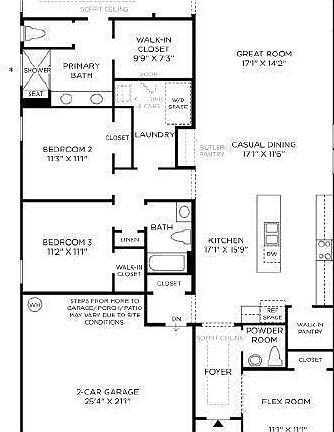 - High Ceilings, Kitchen/Dining Room Combination, Pantry, Master Downstairs, Shower Only, Walk-In Shower