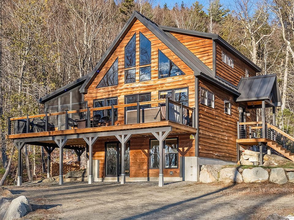 This is not just a house, it is a mountain retreat that perfectly captures the Sugarloaf lifestyle. Built in 2020 and maintained in like new condition, this fully furnished home blends modern luxury with the natural beauty of Maine. Step inside and you are welcomed into an open concept living space that feels both spacious and warm. The living room, centered around a beautiful fireplace, is the perfect place to unwind after a long day on the slopes. The kitchen flows naturally into the main living area, featuring high end appliances, elegant countertops, and plenty of space for entertaining family and friends.