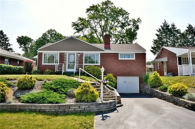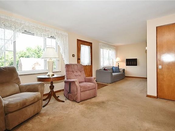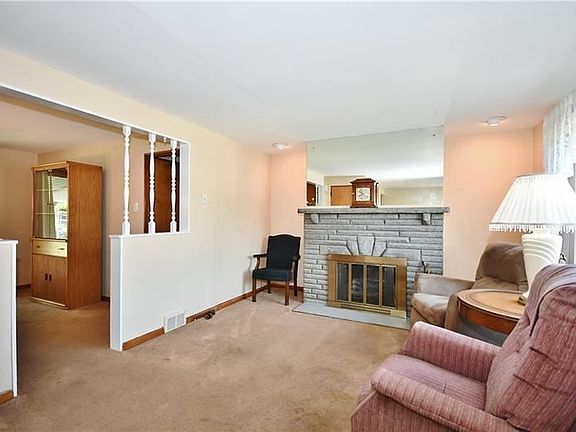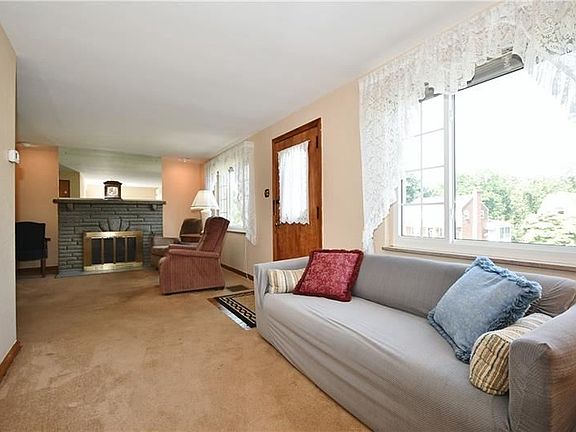 Charming brick ranch features LR w/ beautiful stone fireplace/mantel & two large picture windows; DR w/ partially open wall to LR & another wall w/ sliding glass door to patio; kitchen w/ eat in counter & door to side porch; 2 BDRs; 2 full baths. UPDATES include: indoor and outdoor painting [20-21]; driveway wall [2019]; roof [2018]; front windows all rooms [2017]; garage door [2015] & HVAC [2013 & maintained regularly]. Potential for additional living space, w/ a full basement partially paneled-finished w/ several built in cabinets & storage spaces, additional electrical outlets - lighting, & separate laundry & furnace rooms. Covered back patio perfect for grilling & dining opening to large level backyard. One car integral garage w/ work bench & level driveway that holds 2-3 cars off street. House and garage ~ 1,790 SF. Convenient location- bus line, shopping, dining, movie theatres, hospital & access to PKWY and RT 79. Lovingly maintained for 35 years.